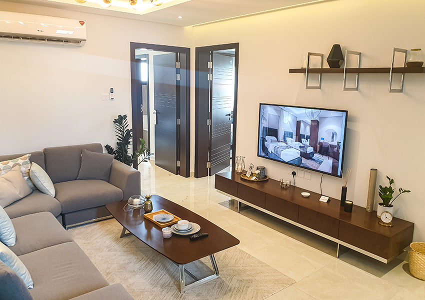 – يحتوي على صالات و غرف معيشة